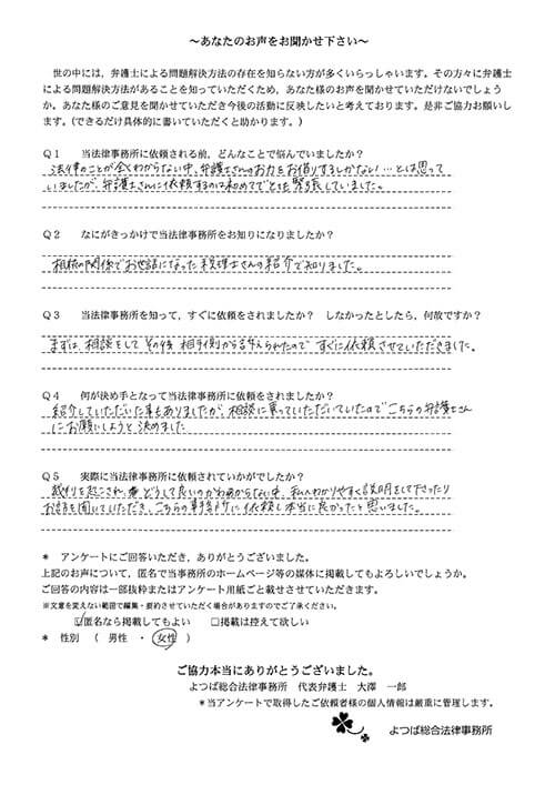 自分一人では、到底無理でしたので、よつばさんの依頼をして思い切って裁判をして本当によかったと思います。